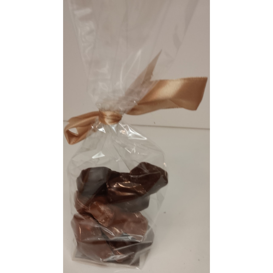 Sucre, sucre invertie, eau, Gélatine de Porc. Chocolat Noir 64%: Pâte de cacao 50,5%; sucre 33%; beurre de cacao 13,5%; pâte de cacao Équateur 2,5%; émulsifiant: lécithine de soja; arôme naturelle de vanille. Chocolat au Lait: Sucre; beurre de cacao; LAIT en poudre, pâte de cacao; émulsifiant: lécithine de tournesol; arôme naturel; cacao: 38% minimum. Matière grasse végétale. peux contenir des traces de fruits à coques.